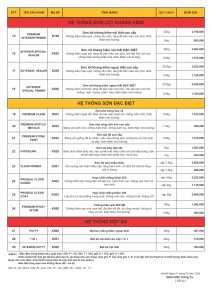 📌 Ảnh bảng giá sơn đặc biệt và lót kháng kiềm: